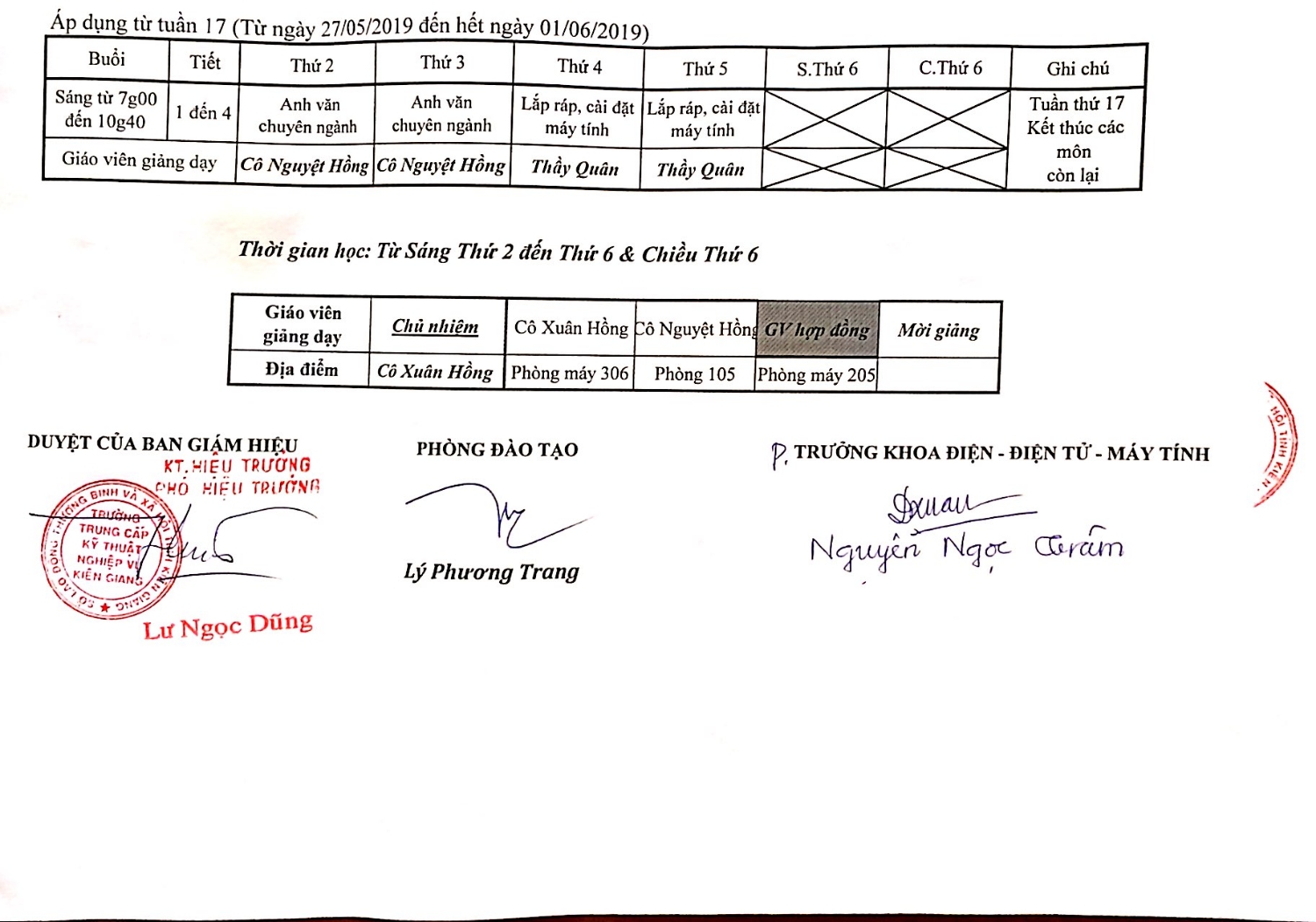 Thời khóa biểu Trung cấp - Học kỳ II [2018 - 2019]