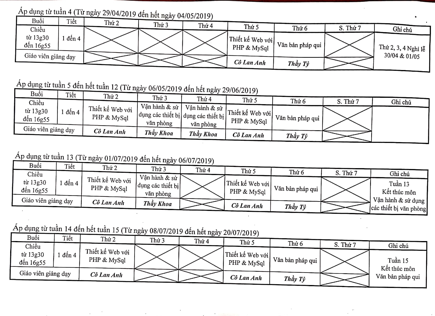 THỜI KHÓA BIỂU TRUNG CẤP HK II NĂM HỌC 2018 - 2019