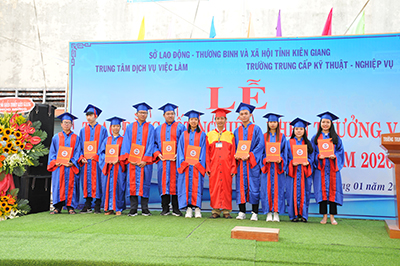 Thực hiện kế hoạch đào tạo trung cấp niên khoá 2015 – 2018, Trường Trung cấp Kỹ thuật - Nghiệp vụ Kiên Giang tổ chức Lễ nghiệp Trung cấp nghề chính quy; Trung cấp chuyên nghiệp chính quy khóa 4, niên khóa 2015 - 2018.