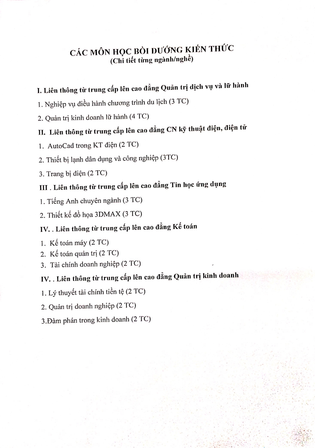 Thông báo tuyển sinh liên thông và mở các lớp học bồi dưỡng kiến thức chương trình liên thông từ Trung cấp lên Cao đẳng
