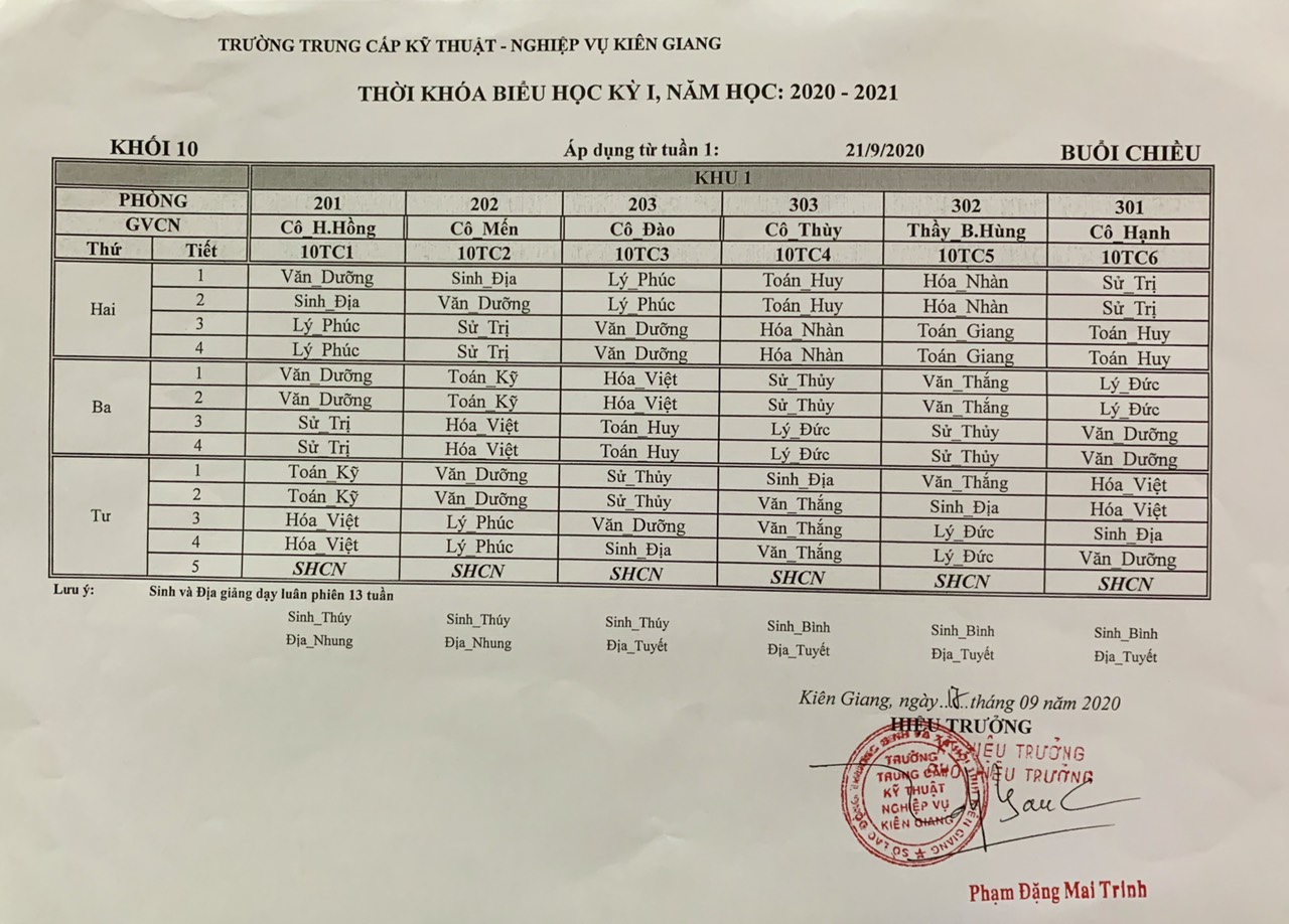 THỜI KHÓA BIỂU THPT KHỐI 10,11,12 HỌC KỲ I 2020-2021