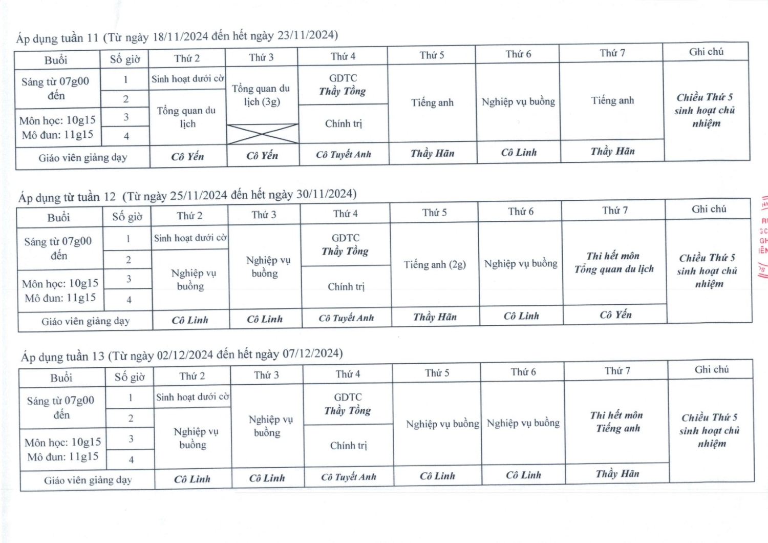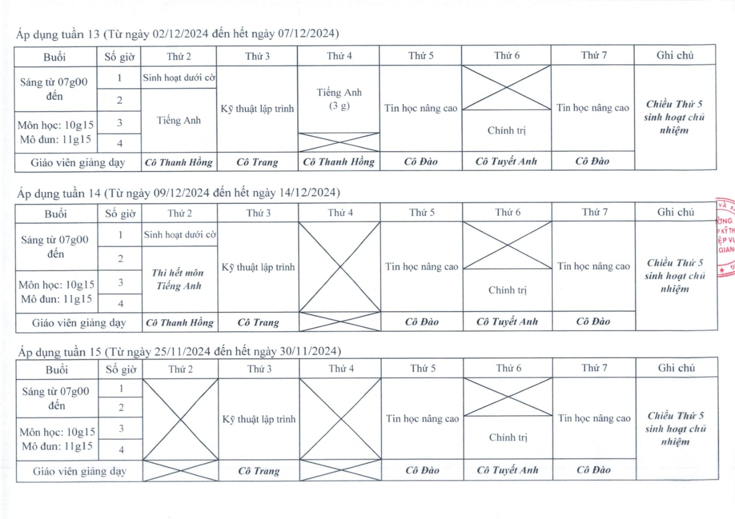 Gửi quý Thầy Cô cùng các em học sinh Thời khóa biểu HK1 - Năm học 2024-2025 của các lớp Trung cấp Khóa 13