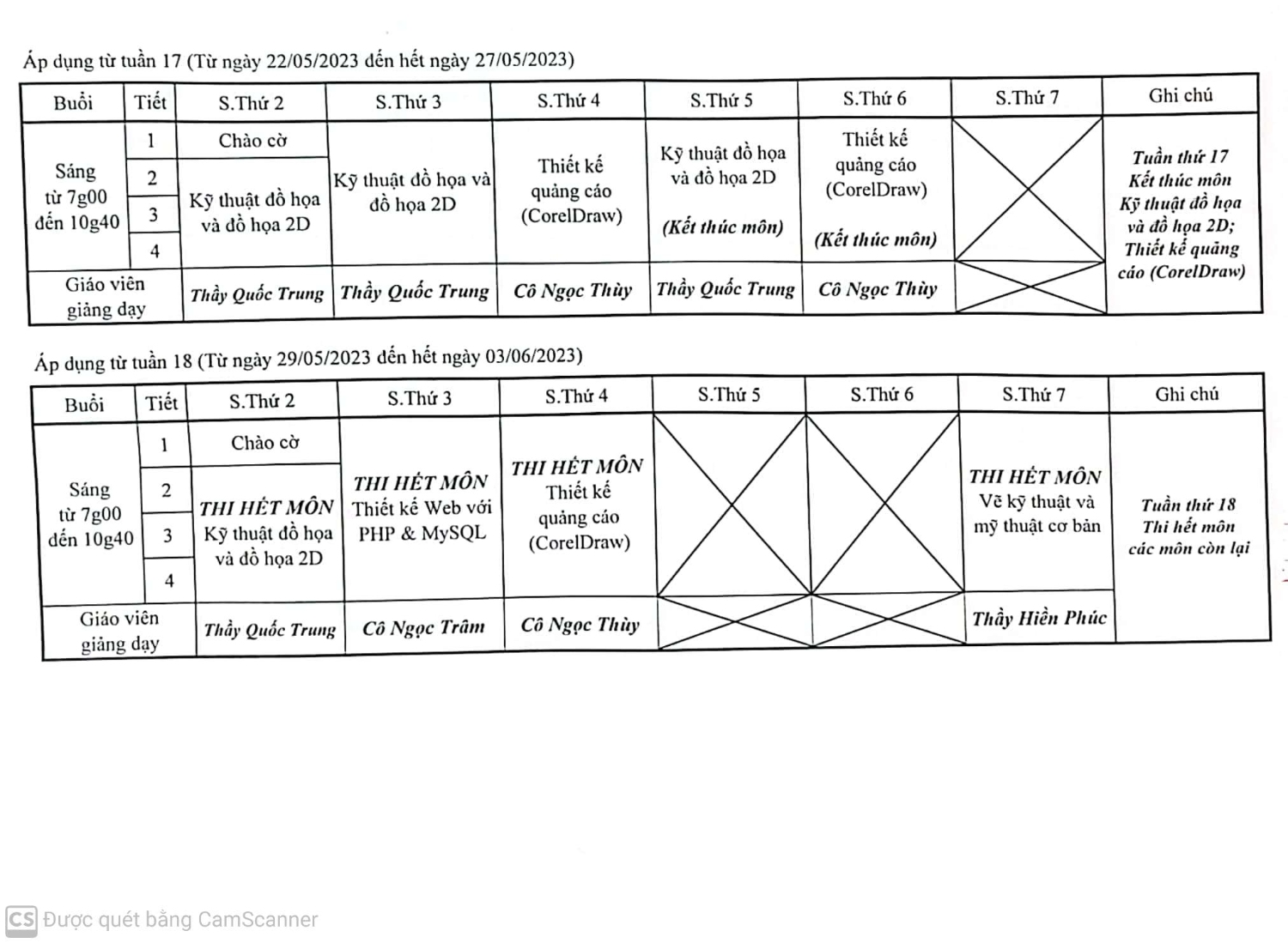 THỜI KHÓA BIỂU TRUNG CẤP KHÓA 11 - HỌC KỲ 2 NĂM HỌC 2022-2023