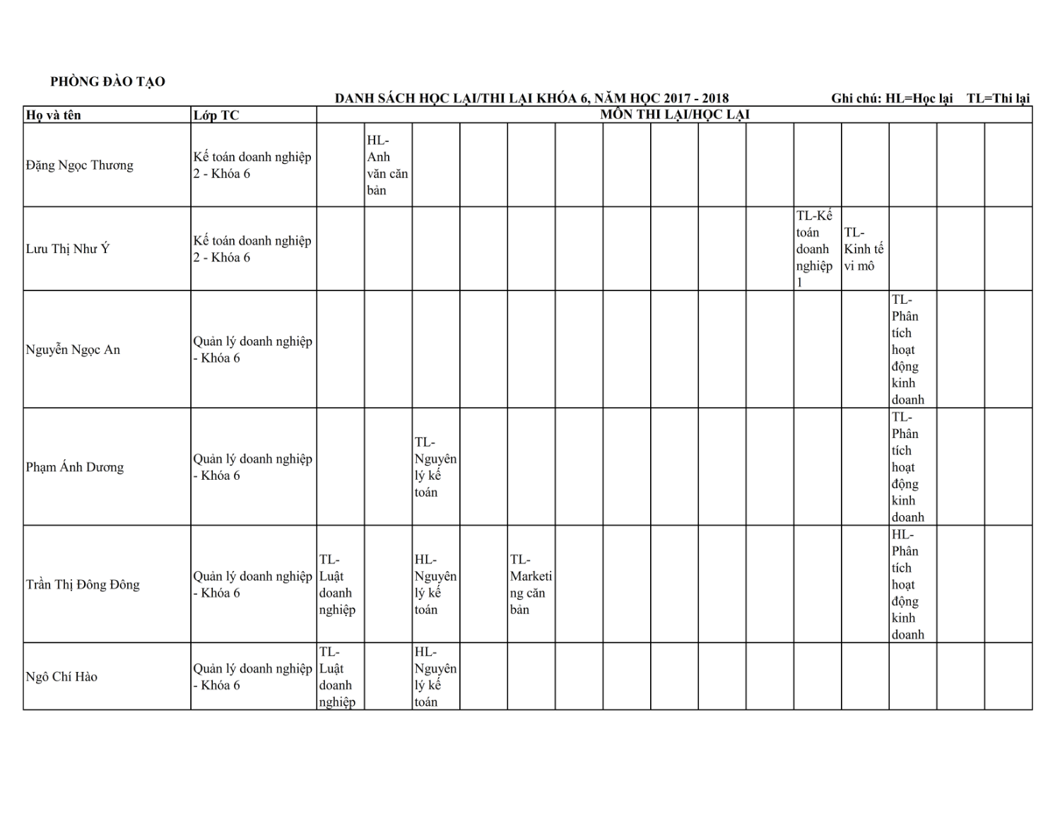 THÔNG BÁO LỊCH THI LẠI VÀ HỌC LẠI CÁC LỚP KHÓA 4, KHÓA 5, KHÓA 6 NĂM HỌC 2017 - 2018